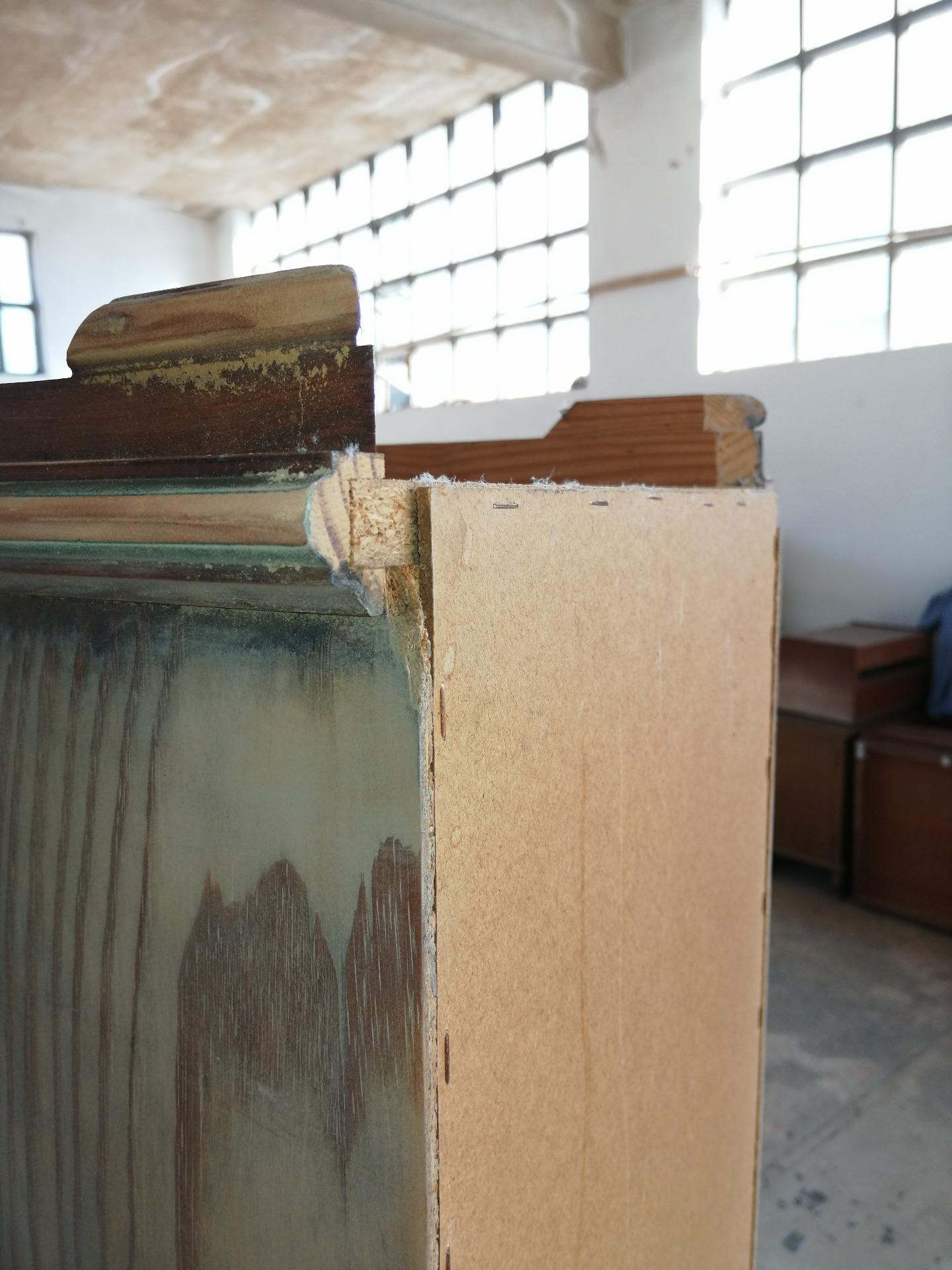 Hemos recuperado esta cajonera que formaba parte de la estructura interna de un armario empotrado que se retiró por su mal estado de conservación.